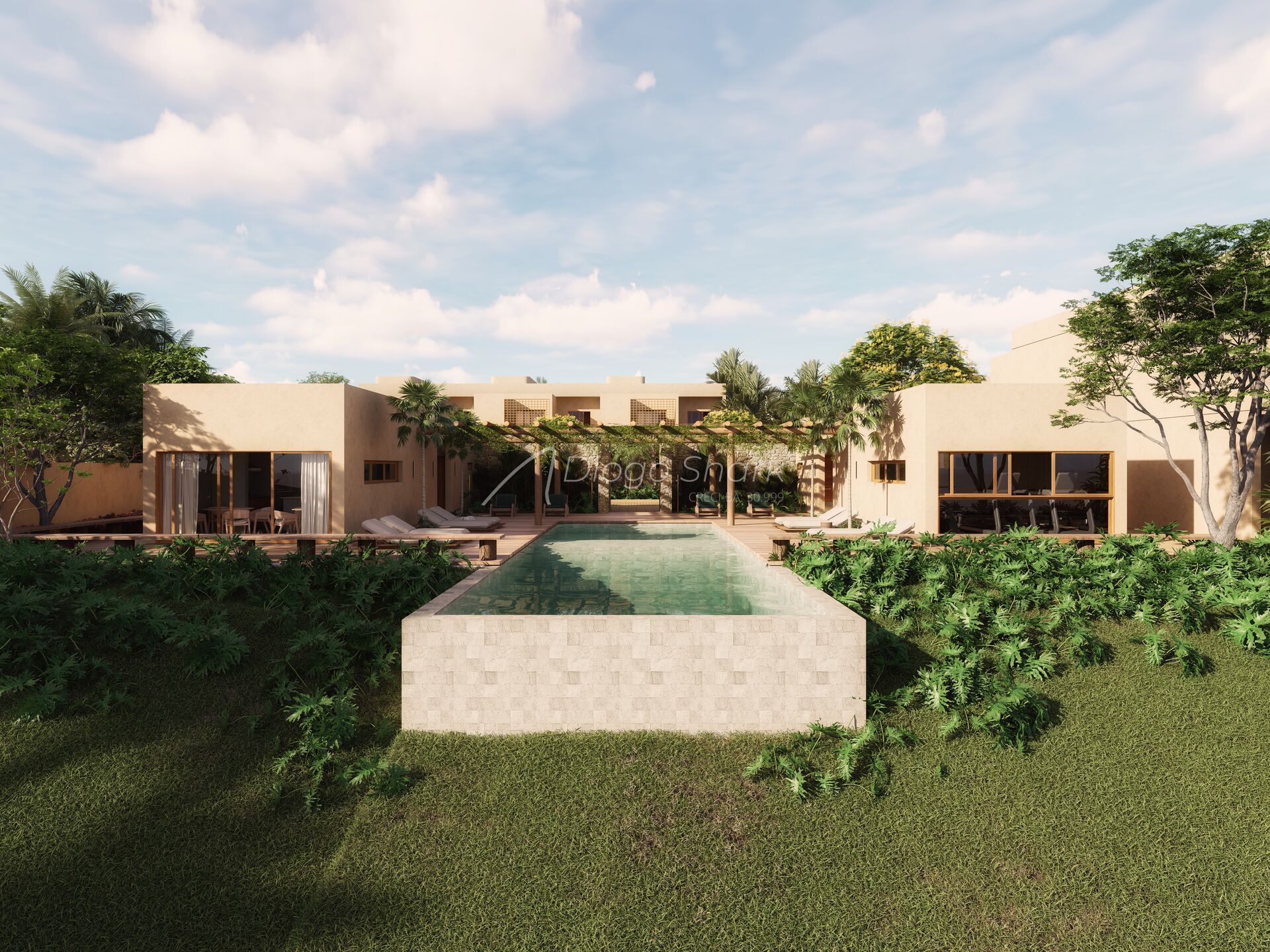 Localizado a apenas 6 minutos a pé do Centro de Arraial d'Ajuda, o empreendimento conta com vilas de alto padrão, com áreas privativas de 178m² (3 suítes) a 251m² (4 suítes), com piscinas privativas que proporcionam momentos de absoluta tranquilidade.